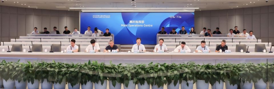 成都世运会赛时指挥部依托市城运中心平台,实现赛事运行全流程实时调度。曹立军通过视频听取赛事保障、媒体服务、志愿服务、场馆防暑降温等方面工作汇报,调度有关运行中心、竞赛场馆中心实战运行情况。